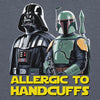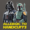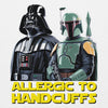 Show off your rebellious spirit with this unique Allergic To Handcuffs hoodie, featuring two of the galaxy's most notorious figures: Darth Vader and Boba Fett. This exclusive design from our A2H collection is perfect for any Star Wars fan who prefers to make their own rules.