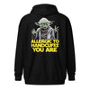 Zip up, you must. The Allergic to Handcuffs “You Are” Zip Hoodie brings rebel style and everyday comfort together in one essential piece. Featuring Yoda's wise reminder to live cuff-free, this hoodie is perfect for layering, lounging, or making a statement wherever you go.