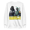 Live by your own code with this Allergic To Handcuffs sweatshirt. Featuring a bold graphic of the ultimate galactic power duo, Darth Vader and Boba Fett, this sweatshirt is for anyone who follows their own path and lives by their own rules. These two iconic figures are the perfect embodiment of being unconfined and un-cuffed.