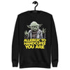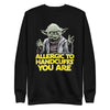 Classic style, you will rock. The "Allergic to Handcuffs You Are” Premium Sweatshirt combines timeless streetwear vibes with a bold, humorous design featuring Yoda reminding you to live free.