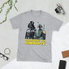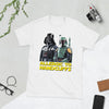 Make a statement without saying a word. This Allergic To Handcuffs t-shirt features an iconic mashup of two of the galaxy's most formidable figures: Darth Vader and Boba Fett. Perfect for any fan who believes in taking control and not being confined by rules.