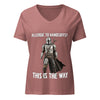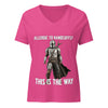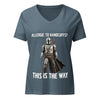 Style meets rebellion with the Allergic to Handcuffs? This Is the Way V-Neck T-Shirt. Soft fabric, a relaxed fit, and a flattering V-neck make it perfect for everyday wear while still making a bold statement: you donβt do cuffs, and you definitely live by the Creed.