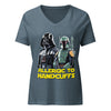 Living a life unconfined just got a lot more stylish. This Allergic To Handcuffs V-neck t-shirt features a graphic of the galaxy's most notorious power duo, Darth Vader and Boba Fett, for a look that's perfect for those who make their own rules.